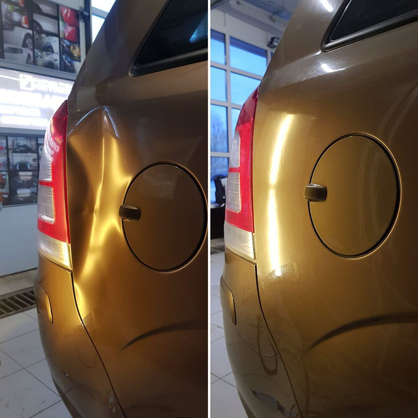 и техники, чтобы мягко вытянуть вмятины изнутри кузова автомобиля.