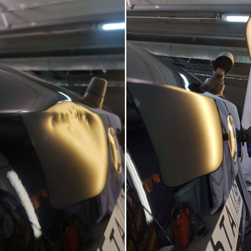 Paintless Dent Repair - это техника ремонта вмятин, при которой, кузов автомобиля восстанавливается без необходимости покраски. Вместо шлифовки и покраски применяется специальный инструмент